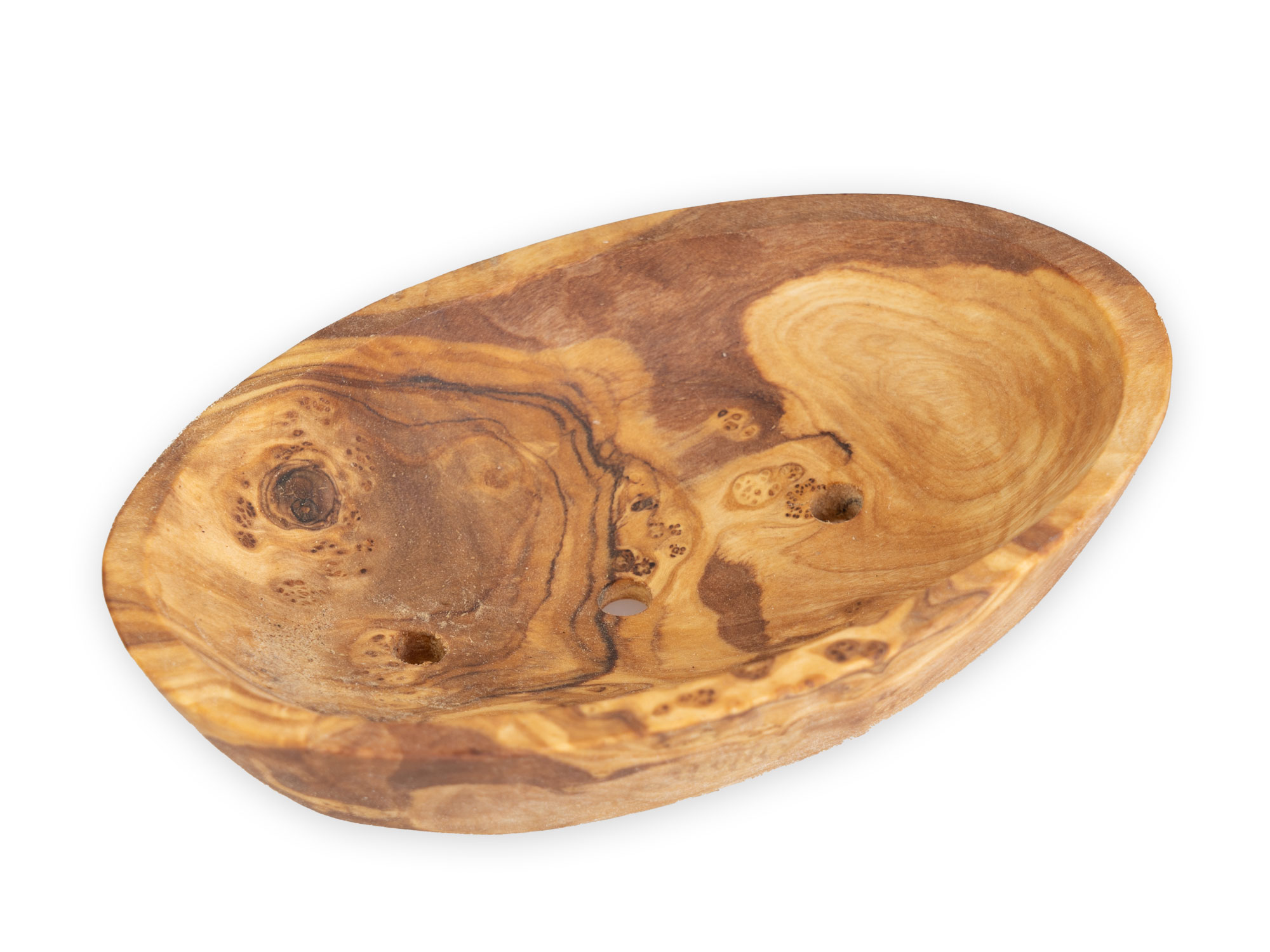 Seifenschale oval mini aus Olivenholz - ca. 13 cm Länge. Diese Seifenschale bringt Wärme in jedes Badezimmer. Durch die Härte des Olivenholzes und den hohen Ölgehalt ist die Seifenschale äußerst resistent gegenüber Feuchtigkeit. Ausreichend Löcher für einen guten Wasserablauf sind vorhanden.
